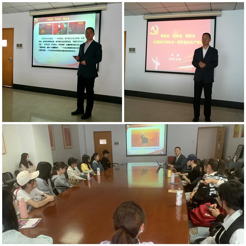 张健以“学党史,听党话,跟党走,以实际行动争当一名合格的共产党员”为题,从红船精神、抗疫斗争和脱贫攻坚等向学员们讲述了中国共产党的初心使命和为中国革命、建设和改革做出的杰出贡献。紧接着他向学员们提问“你为什么要入党”、“全党为什么要开展党史学习教育”,引起同学们的思考,然后他讲述了开展党史学习教育的重大意义和学习要求,他告诉同学们,认真学习党史会帮助大家建立正确的入党初心。接下来,他根据《党章》规定,以习近平新时代中国特色社会主义思想为指导,结合习近平总书记重要讲话精神,阐述了合格共产党员的标准和要求,讲述了怎样才能成为一名合格的共产党员。他指出,入党积极分子正确认识党的性质、宗旨和历史任务,要以党员的标准严格要求自己,遵守党的纪律,在思想上与党中央持续一致。最后他希望每位学员都是能成为一面旗帜,肩负历史使命,坚定前进信心,立大志、明大德、成大才、担大任,努力成为堪当民族复兴重任的时代新人,用实际行动响应习近平总书记对青年学子们的殷切期望,让青春在为祖国、为民族、为人民、为人类的不懈奋斗中绽放绚丽之花。