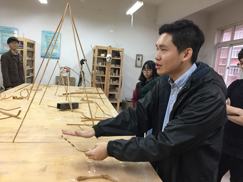 首先范承宗结合自己的设计体悟,为大家展示了一件作品从机缘、概念到形式探索、制作流程等多方面的过程,以及作品带着他世界旅行的奇妙经历;然后这位台湾设计师带着同学们亲手体验和探索竹材的各种形式结构的可能性,进而如何将其拓展到产品设计当中。