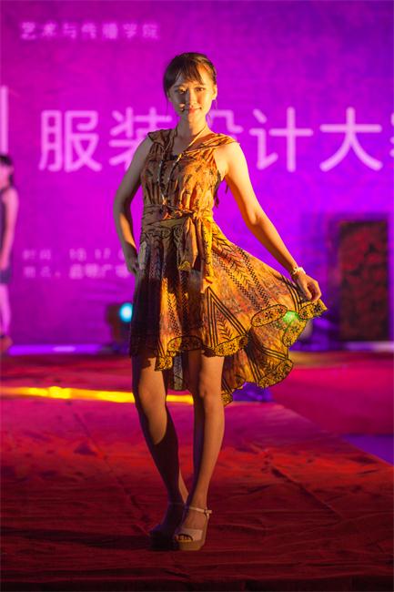 通过10月初激烈的初赛角逐,脱颖而出的21组参赛选手大胆创作,释放激情。作品或个性鲜明或性感成熟,新意十足的创意洋溢着对火热青春的歌颂。比赛现场人声鼎沸,警戒线拦不住观众的热情,欢呼声此起彼伏,里三圈外三圈的支持给了选手无比的自信。每位选手通过新奇的剪裁方式、大胆的材质选取、创意的色彩拼接使每件作品整体呈现出浓郁的复古风情和极富新意的时代特点。最终艺传邹思佳同学设计的《Flamingo》获得一等奖,理工周婷同学的《狂·夜》获得二等奖。比赛结束时,在场老师不禁感慨道:“室内比赛远远比不上户外广场的活动效果来得震撼!广场真是学生走下网络、走出寝室的好去处!”。