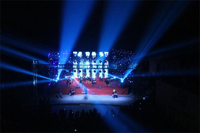一首《give me one reason》,易教徒乐团的老师嘶吼出年轻的不羁。暗黄的灯光下、嘈杂的贝斯声、迷离的电子音,主唱低沉而富有感染力的的嗓音融混着观众的热情,掀起了场上场下一片热浪。晚会在历经新生、挫折、奋斗,三个主题篇章过后,由杭州师范大学乐队的《光辉岁月》将整场晚会带入高潮。他们在一浪高过一浪的呼喊尖叫中登场,观众们随着音乐舞动、呐喊,轰鸣的电吉它失真音色交织着最初的粗糙的理想主义。“今生只有残留的躯壳,迎接光辉岁月,风雨中抱紧自由。”观众专注地聆听着音乐,在场的每一个人似乎都无法不沉醉于其中。今晚这是属于我们熠熠生辉的光辉岁月。整个现场都充满了激情与醉人的旋律!