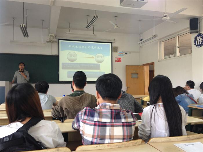 为帮助同学们进一步明确今后的就业方向,永利集团304am登录结合大学生就业指导课程,及即将到来的职业生涯规划设计比赛,于2015年4月16日在翔宇楼C203召开了“职业生涯规划设计指导”讲座。本次讲座邀请了质量工程安全学院的学工办主任王强老师,分享他多年带学生参加职业生涯规划大赛的经验。出席本次讲座的有艺传学院党委副书记李炯、辅导员潘东方老师以及来自各个年级的预参赛选手们。