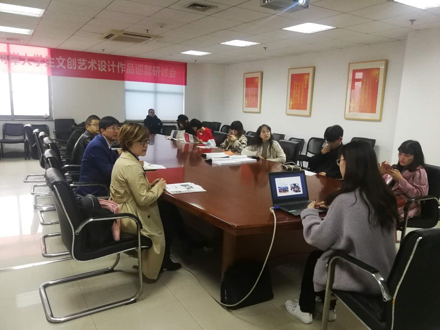 留学项目负责人、坎大驻沪办Ms.Emma Xie向我院介绍了留学项目情况及特色。广告学系主任李闯、视觉传达设计系主任肖丹等系部主任就“3+1+1”本硕项目以及寒假短期访问项目详细交换了意见,仔细研讨了学生大四阶段的课程学分互认事宜,从专业课程和人才培养定位角度分析了新西兰设计与传媒类专业留学的特色与可行性。