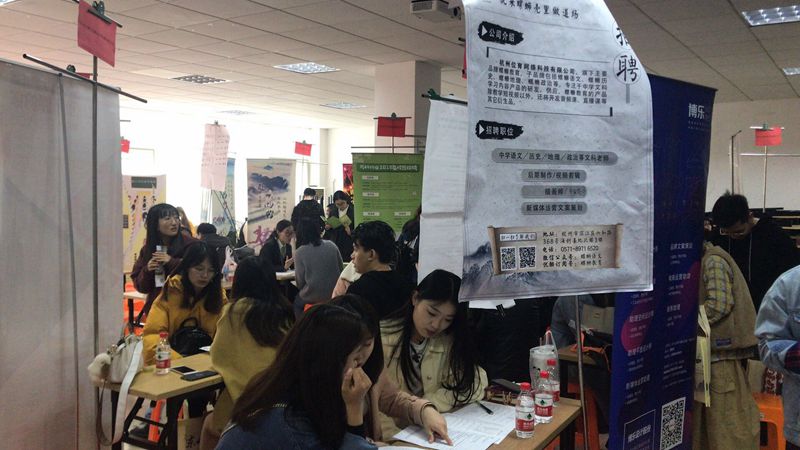经过前期审核筛选最终确定青年时报、博乐设计、瑞德设计、万科等35家行业内知名企业来校参加招聘会,参会企业共为学生提供139个就业岗位。招聘会现场人头传动,除本校学生外,杭电、理工等周边高校相关专业也有部分同学来现场咨询应聘。