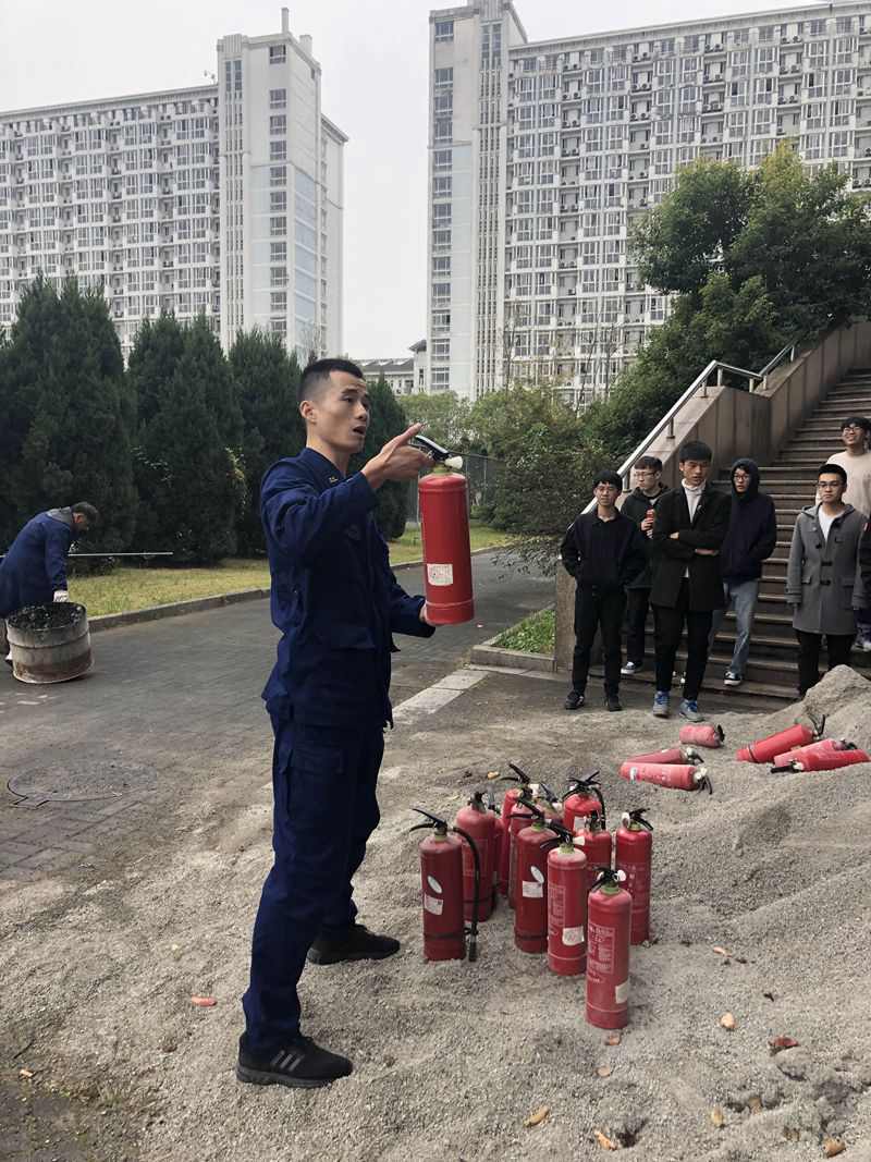莫队长首先针对火灾视频案例的警示分析,特别是粉尘爆炸案例的分析,向大家介绍了火灾以及粉尘爆炸的危险性,然后结合学院专业实验室木工教室,重点讲解防尘防暴的专业知识,仔细分析了可能存在和发生的安全隐患。莫队长还为同学们讲解消防安全逃生知识,在今后的学习生活中应该注意安全事项,特别木工实验课提出一些具体的防范要求,对保障实验室安全起到了重要的警示意义。课后同学位还对灭火器的正确使用进行了现场演练,在队长的指导下大家都熟练掌握了使用灭火器的三步骤,演练气氛热烈,参与人数众多,达到了安全教育的目的。本次活动得到校保卫处的大力支持,活动取得了预期的效果。