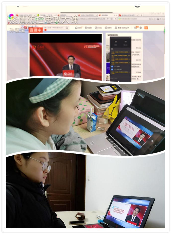 课上,来自清华大学、中国人民大学、北京师范大学和中央财经大学的四位知名教授在线侃侃而谈。艾四林教授为全国大学生讲授了“在抗击疫情斗争中深化理论认识”,秦宣教授讲授了“疫情大考告诉我们什么”,王炳林教授讲授了“总结历史经验,增强必胜信心”,冯秀军教授讲授了“战‘役’里的最美青春——谈中国青年的责任与担当”。课程中,几位教授讲述的事例鲜活,生动,令人难忘,同时也强调了一下几方面:确保人民群众生命安全和身体健康;提倡文明健康、绿色环保的生活方式;人类是一个命运共同体;等等。