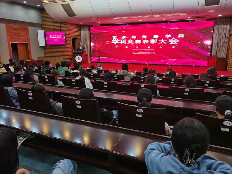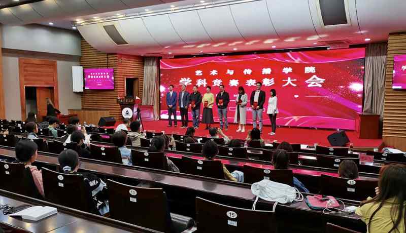 表彰大会在庄严的国歌中开始,副院长魏殿林宣读了教务处专门为大会发来的贺词,并详细介绍了学院主要承办组织全校的五项省A类学科竞赛获奖情况。近四年来,学院总体上学科竞赛参与队伍数与获奖数稳步提升。其中,今年全国大学生广告艺术大赛参与队伍数140支同比增长1倍,并且在省级奖项上取得了数量、等级上的双突破;省乡村振兴创意大赛首次组织发动全校师生参赛,目前在专项赛道已获得4项省级奖;浙江省大学生工业设计竞赛去年再次斩获省一、二、三等奖共10个奖项。