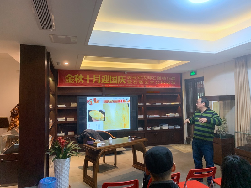 上午10点许,浙江大学卢小雁教授专题讲座开始。他为来自永利官网的篆刻爱好兴趣小组学员们生动介绍了国石文化的起源与历史,详细展示了作为世界物质文化遗产的印石文化及四大国石——寿山石、昌化石、青田石、巴林石的特征。卢教授讲解细致生动、深入浅出,讲座全程两个余小时,学生听得凝心汇神并积极互动提问。