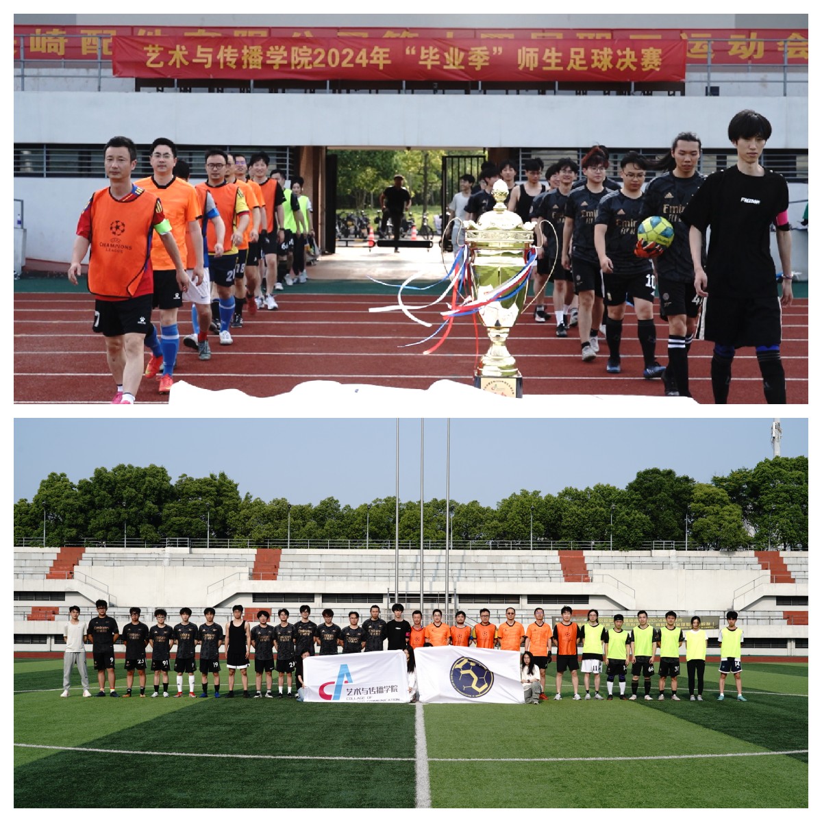 比赛尾声,院工会主席李振鹏老师分别为决赛最佳教工球员、最佳学生球员、最佳门将等颁发金球、金靴、金手套等,最后全体参赛师生一起捧起饱含艺传师生情谊的纪念奖杯,为比赛画上了圆满的句号。