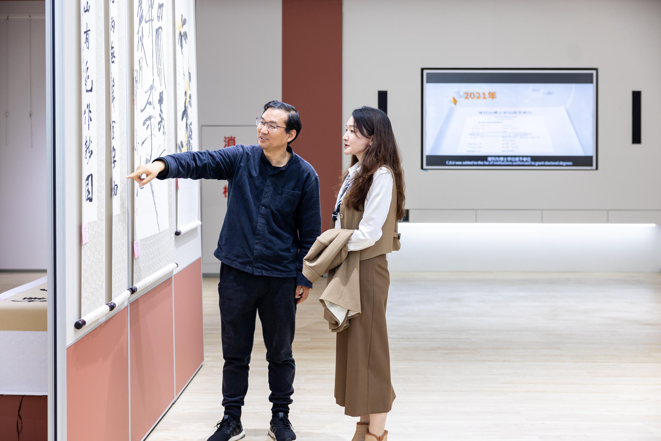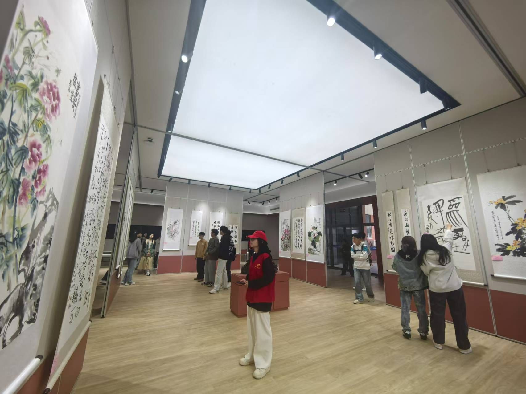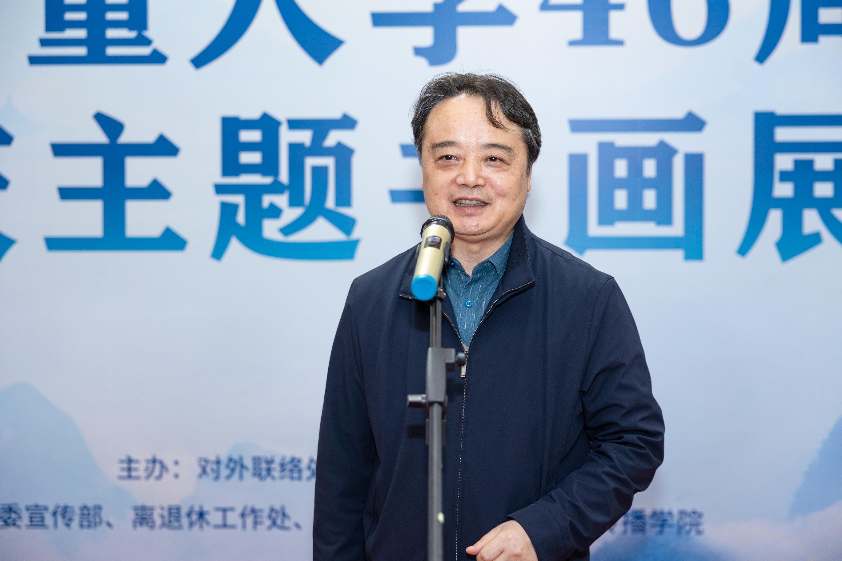 冯时林代表校友总会在开幕式上致辞并介绍入展作品基本情况。他表示,参展的书画作品表达了大家对学校的深切热爱和美好祝福,蕴含着对学校未来事业发展蒸蒸日上的美好期待。作品具有很强的观赏性和感染力,体现了较高的艺术价值。他希望通过书画展,激发每一位参观者内心深处对于美的追求和向往,陶冶师生情操,提升师生审美能力,共同创造更加丰富多彩的校园文化生活。