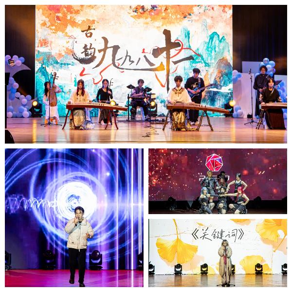 古韵乐府民乐社的同学们以精湛的传统乐器技艺,倾情演绎了经典曲目《九九八十一》,展现出别样的艺术魅力;来自sky音乐社的丁晓波将歌曲《逆战》中的力量与勇气演绎得淋漓尽致;J舞社的《Hashtag》再次将青春的火焰燃烧至沸点;24视传4班劳思佳同学带来的《关键词》让我们找到与自己共鸣的声音,感受那份来自心底的温暖与力量。
