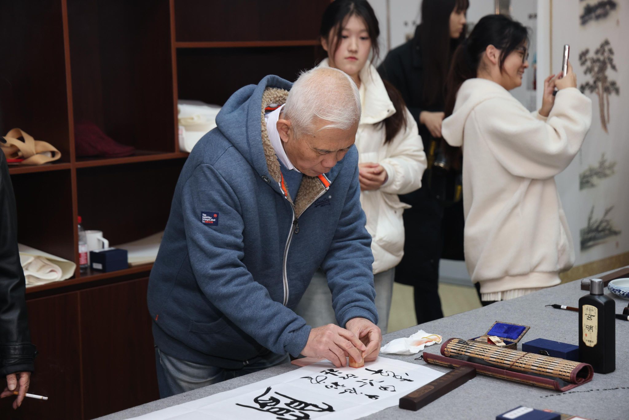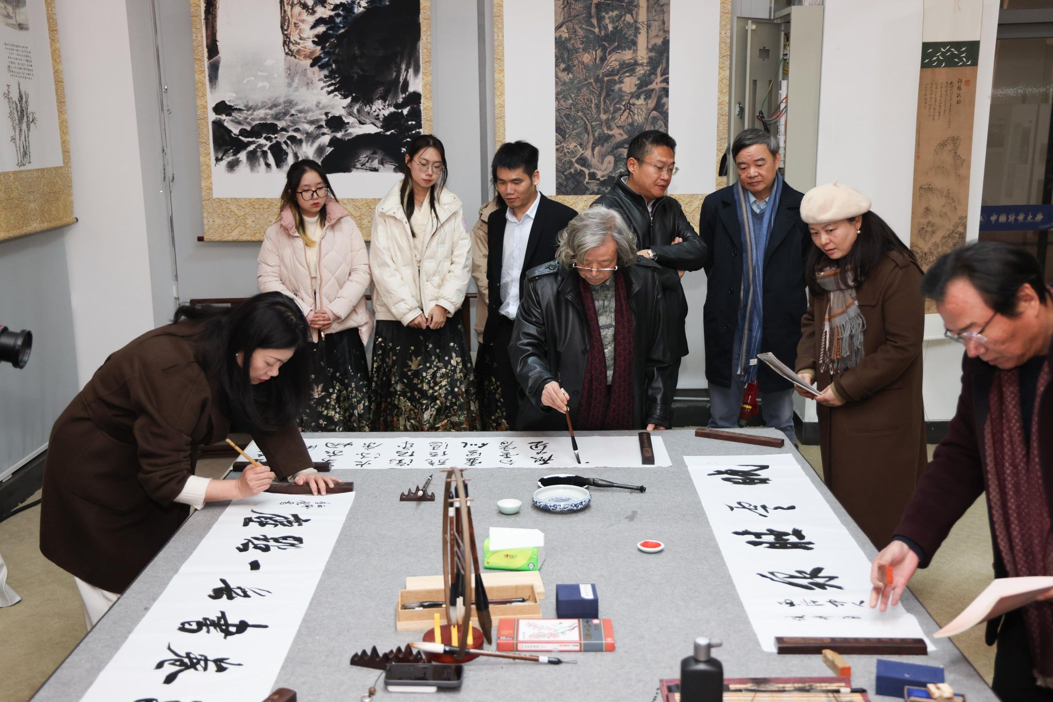 开幕式后,西泠印社理事吴静初、李早、倪郡阳、郭超英,西泠印社社员李砚、倪旭前等名家现场开笔,挥毫泼墨,创作了多幅艺术佳作,为此次活动留下了珍贵的见证,也为美术馆送上美好的祝愿。