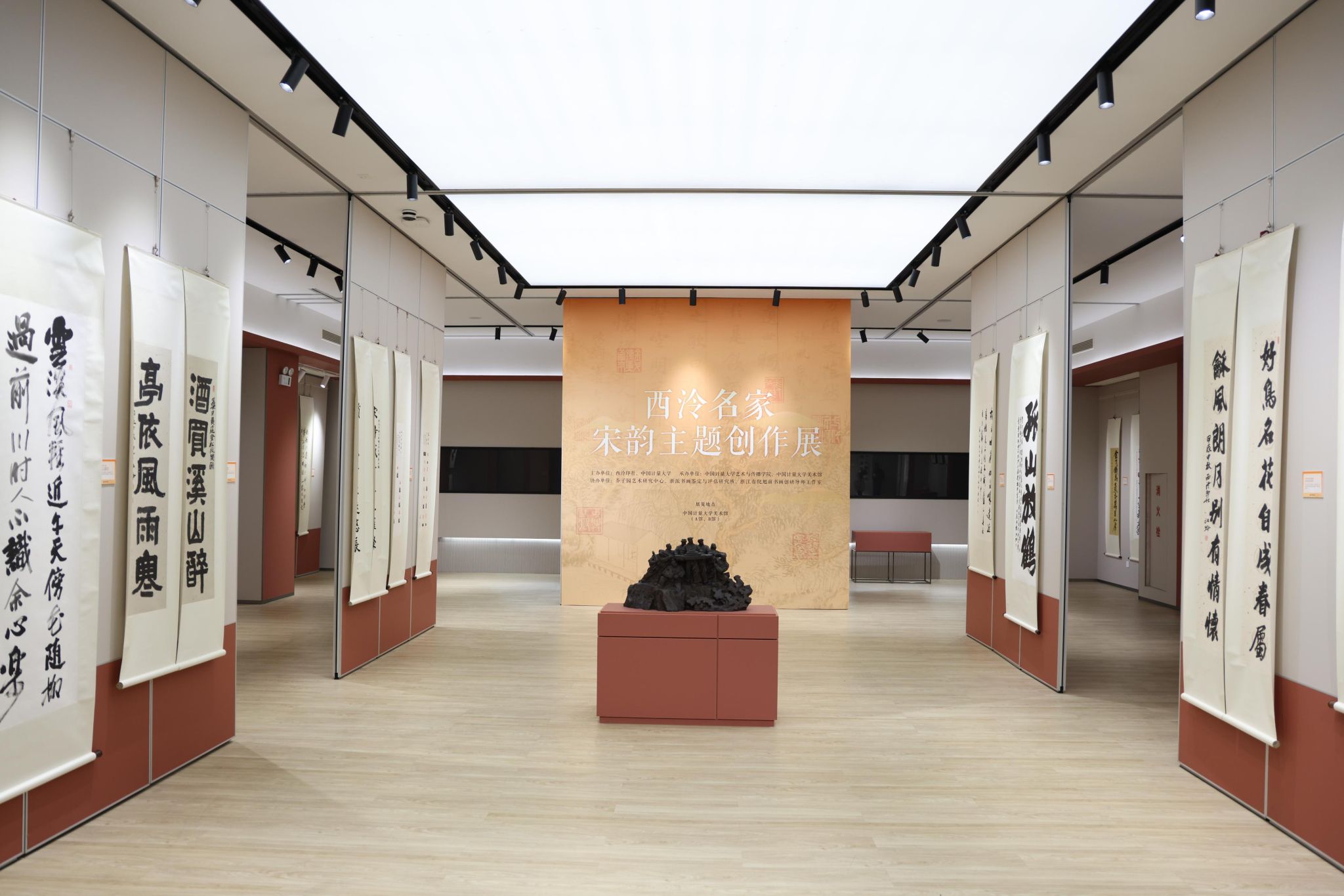 12月13日,由西泠印社、永利集团304am登录联合举办的“西泠名家宋韵主题创作展”在校美术馆开幕。校党委副书记肖刚出席开幕仪式并致开幕辞。西泠印社党委副书记、社委会副主任王宏伟,西泠印社参展艺术家代表李早理事等出席开幕式并讲话。学校相关部门领导及学院领导班子成员、师生代表参加了开幕式。