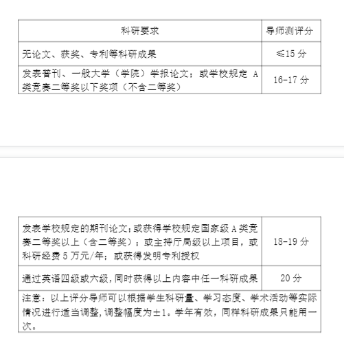 将“18-19分一栏中‘或获得学校规定国家级A类竞赛二等奖以上(含二等奖)’”中的“国家级”三个字删去,按照“或获得学校规定A类竞赛二等奖以上(含二等奖)”执行。